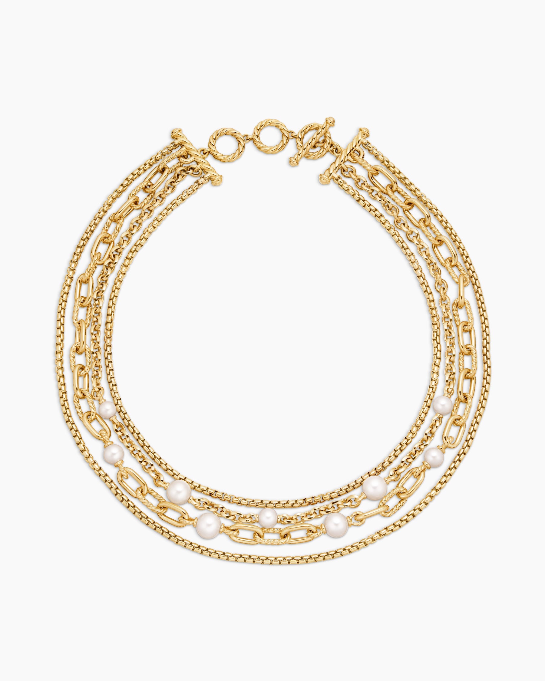 DY Madison® Pearl Multi Row Chain Necklace in 18K Yellow Gold with Pearls -