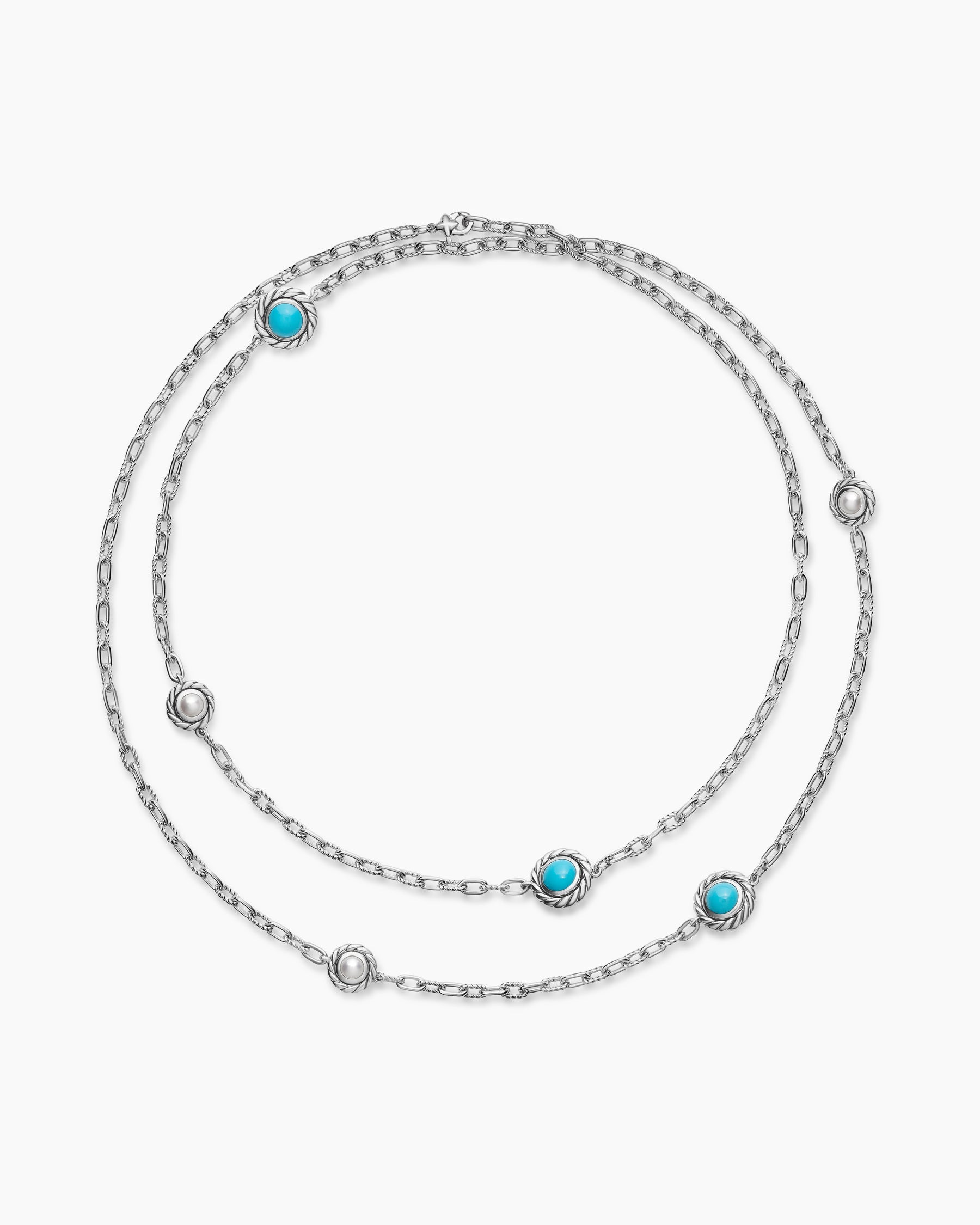 Pearl Classics Station Chain Necklace in Sterling Silver with Turquoise, 4mm -
