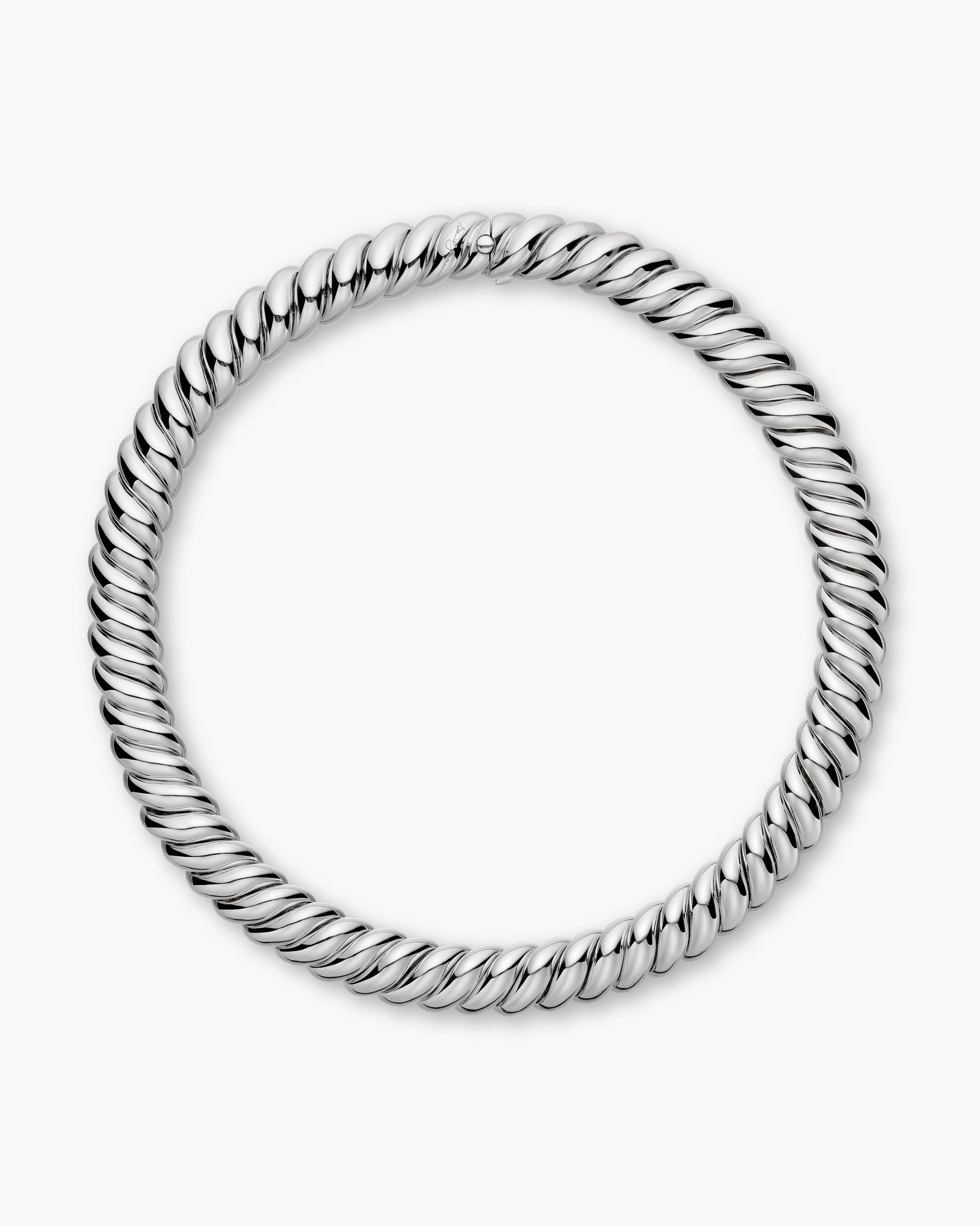 Sculpted Cable Flex Necklace in 18K White Gold with Diamonds, 7.5mm