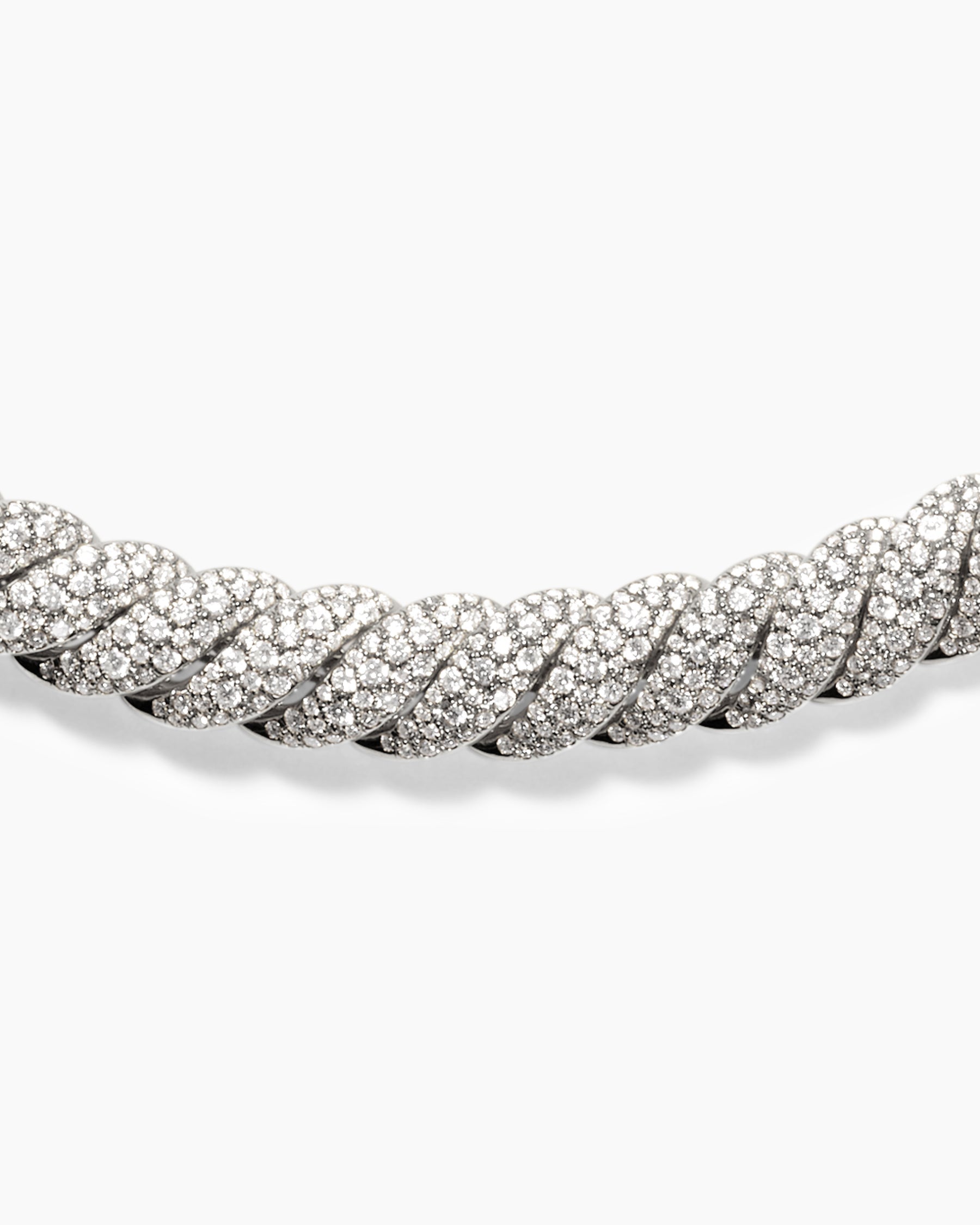 Sculpted Cable Necklace in 18K White Gold with Diamonds, 8.5mm -